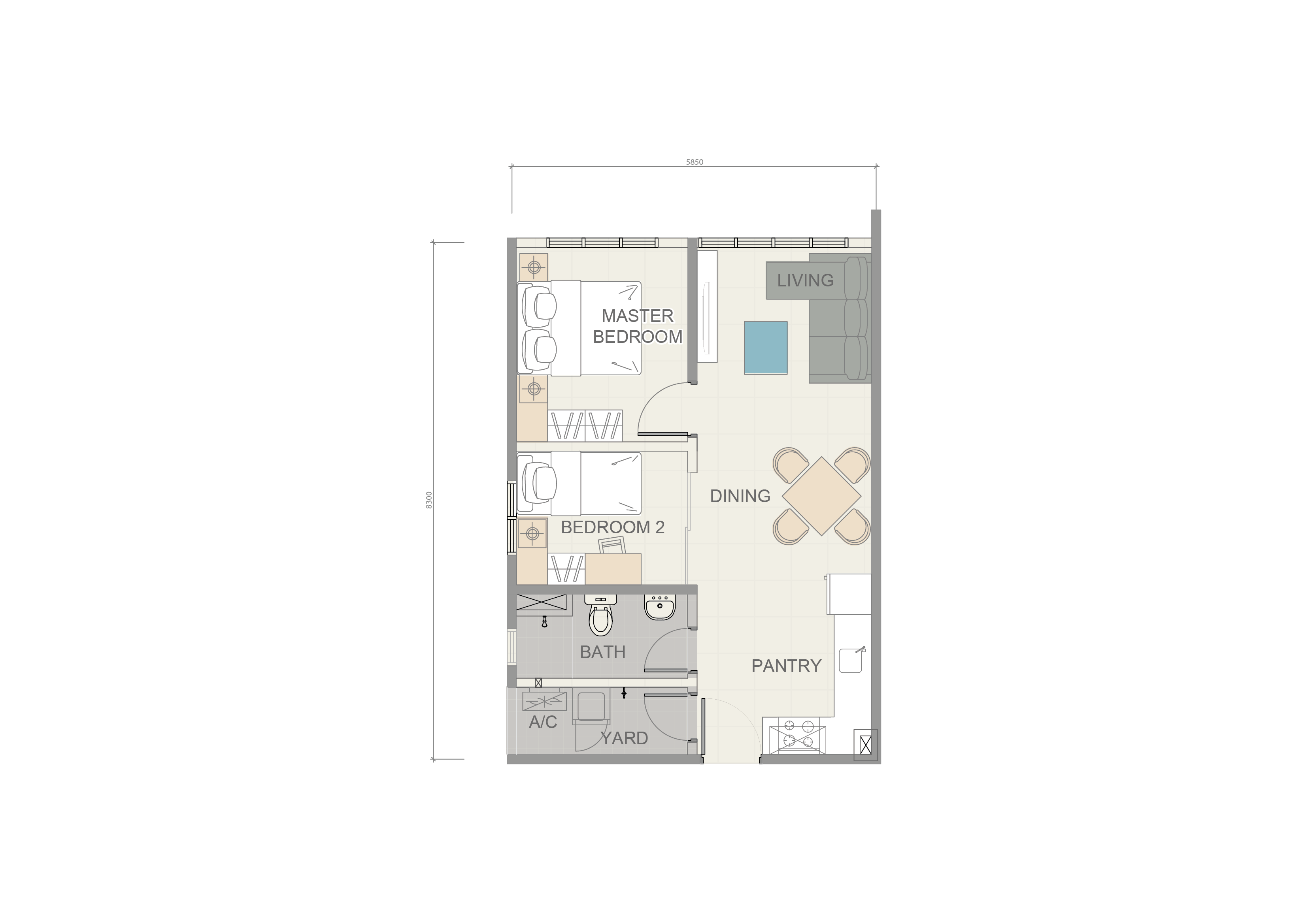 UNIT SIZE : 61.37 SQ.M (660 SQ.FT)
