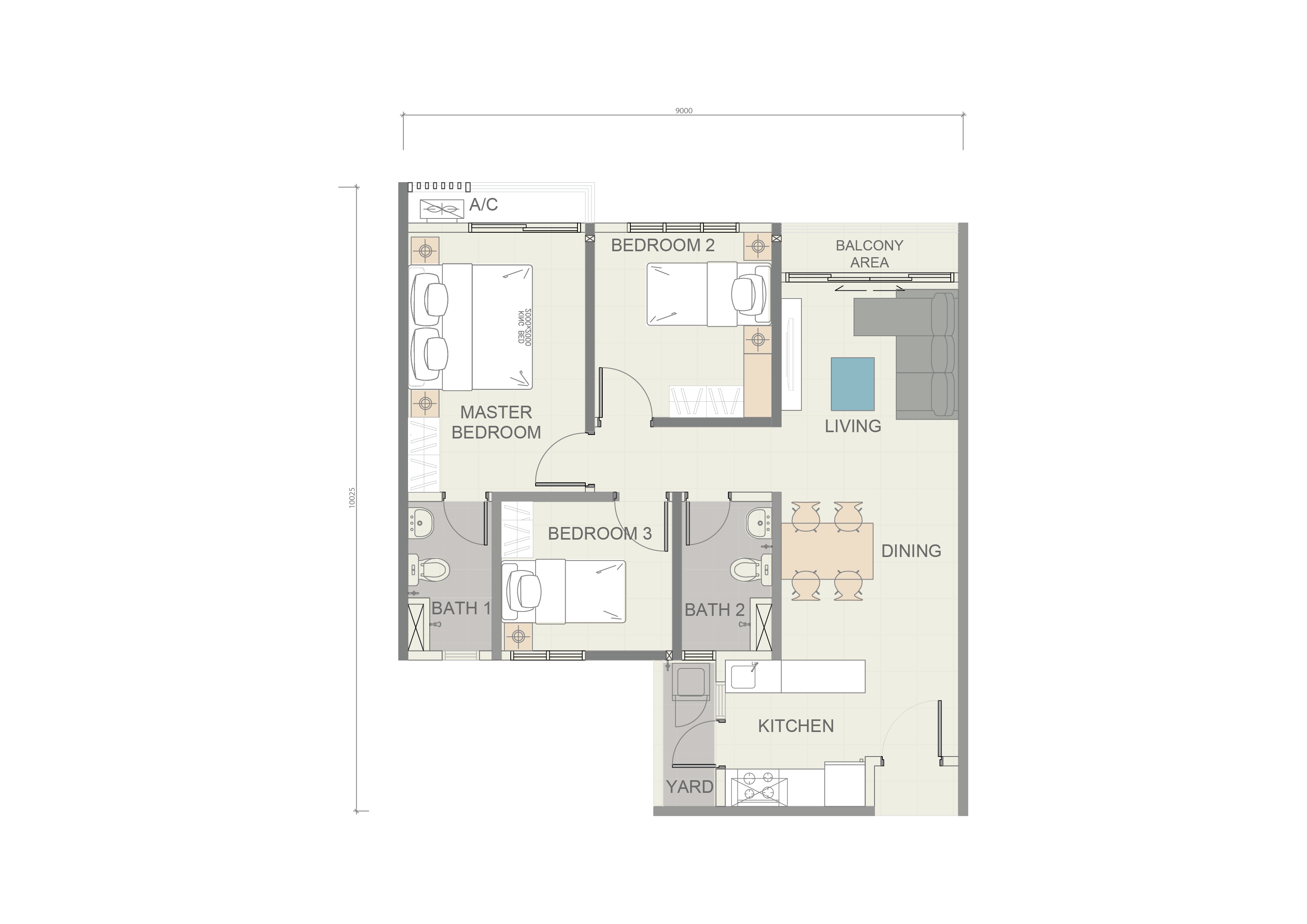 UNIT SIZE : 76.08 SQ. M (819 SQ.FT)